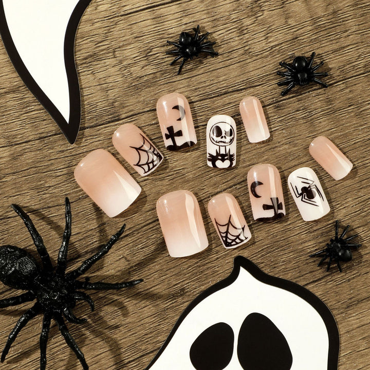 These ghostly white nails bring a chillingly chic vibe to any costume or outfit. Quick to apply and durable for all your Halloween adventures, they’re perfect for haunted parties, trick-or-treating, or simply showing off your spooky style. Add a touch of spectral sophistication to your Halloween look!