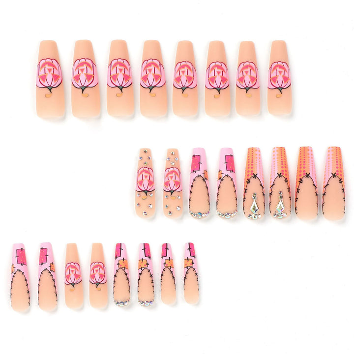 Gently align the press-on nail with your natural nail, ensuring a snug fit from cuticle to tip. Press firmly and hold for about 10 seconds to allow the adhesive to bond seamlessly.