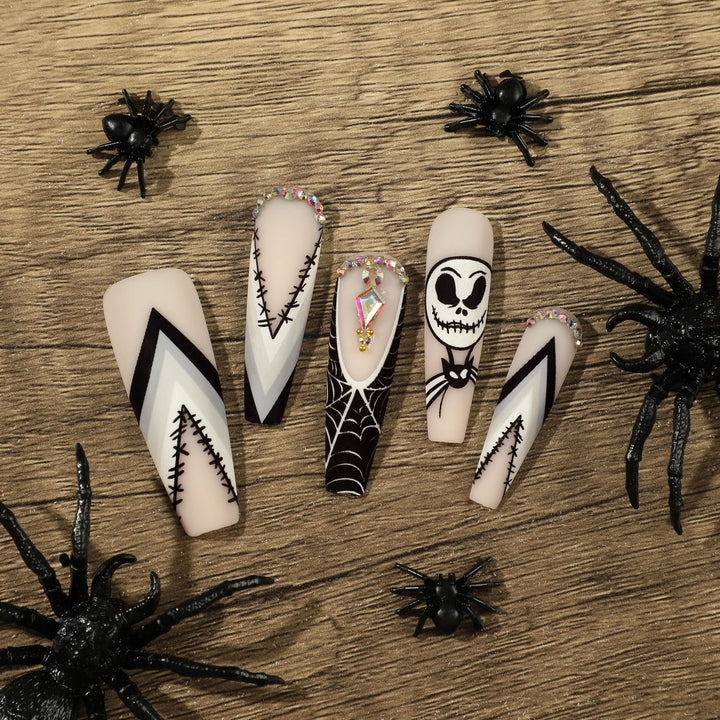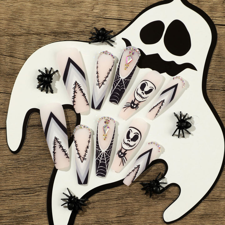 A cute and spooky nail design featuring playful little ghost motifs on a soft or dark base. The whimsical vibe mixes Halloween fun with a touch of charm, making it perfect for festive occasions or anyone who loves quirky, themed nails with personality.